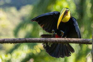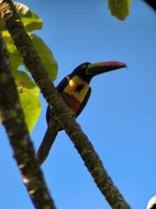 The birdwatching is quite remarkable; you may watch the fantastic scarlet macaws, the Collared and the Fiery-billed Aracari, Great Tinamou, Chestnut-backed Antbird, Black-hooded Antshrike, Turkey vulture, Long-billed Gnatwren, Keel-billed Toucan, and by the water, the gorgeous Anhinga, Tiger-herons, Jacanas, Pied-billed Grebes, and Boat-billed Herons.